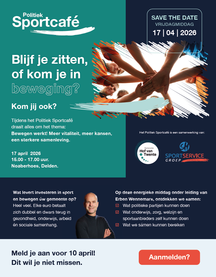 Tijdens het Politiek Sportcafé Hof van Twente maken we deze opbrengsten tastbaar. Niet alleen met cijfers, maar vooral met verhalen, inzichten en praktijkvoorbeelden die raken.