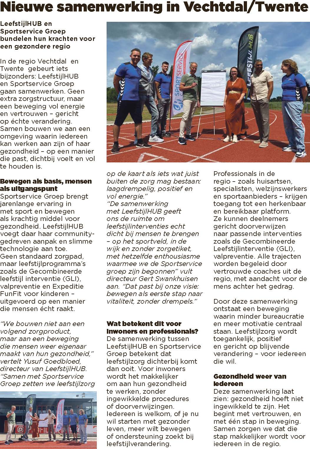 Sportservice Groep gaat samenwerken met LeefstijlHUB voor een gezondere regio in Vechtdal/Twente.